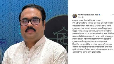 বগুড়া-৬ আসনে বিএনপির প্রার্থী হতে চান সাবেক যুবদল নেতা আরাফাতুর রহমান আপেল